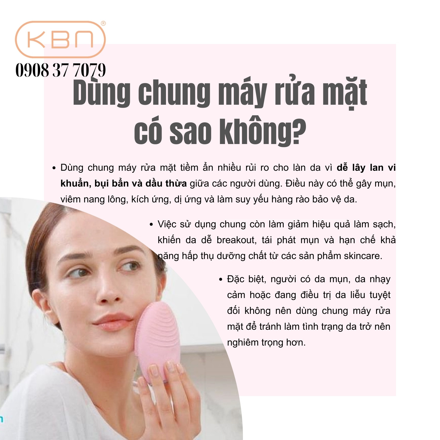 - Người có làn da mụn: Da mụn rất nhạy cảm với vi khuẩn. Việc dùng chung máy rửa mặt dễ làm mụn lan rộng, viêm nặng hơn và kéo dài thời gian điều trị.