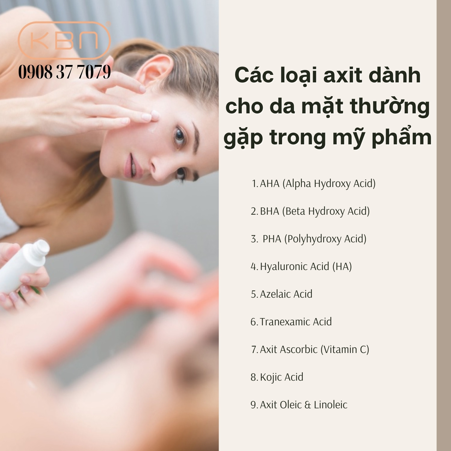 Các loại axit dành cho da mặt thường gặp trong mỹ phẩm.