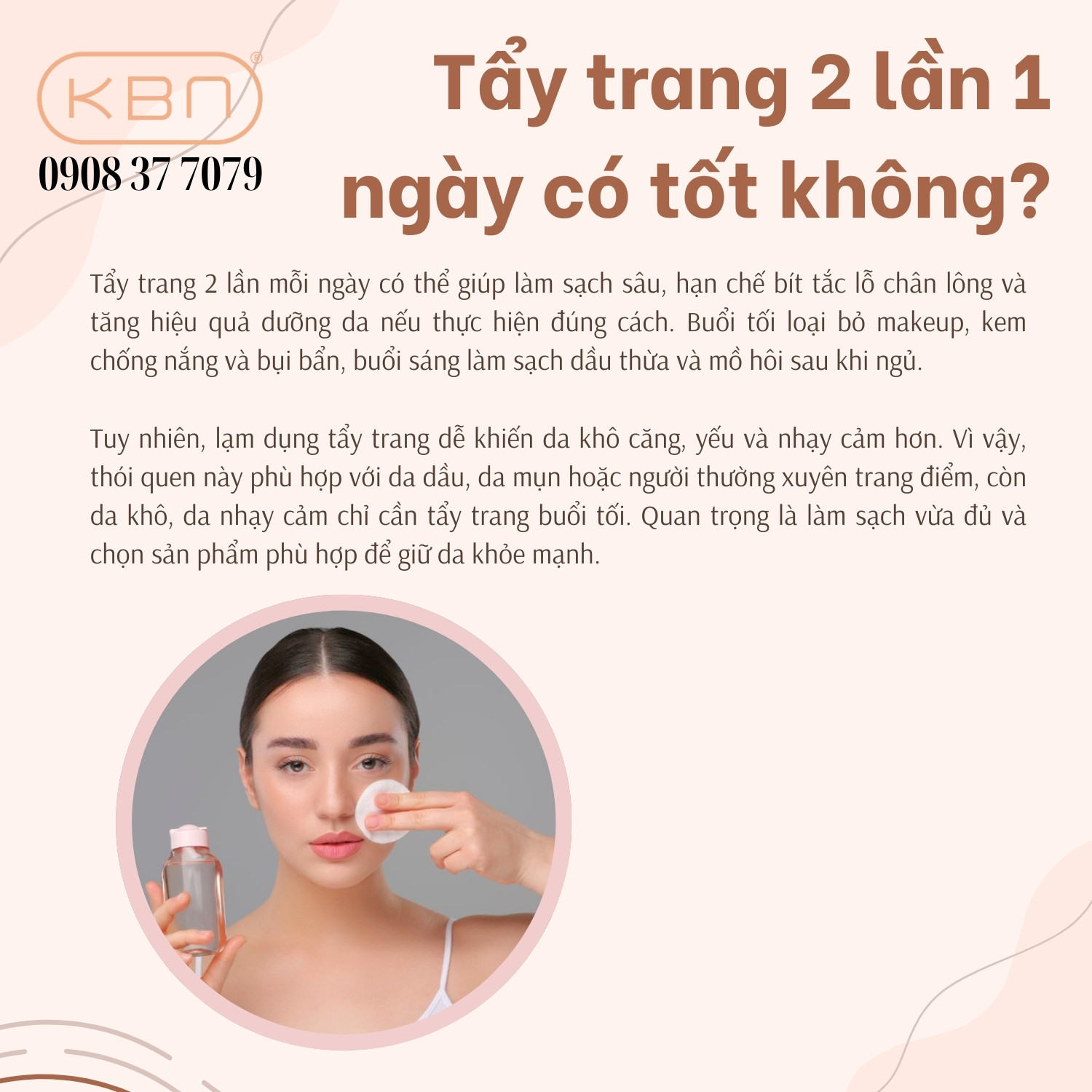 Hy vọng những chia sẻ trong bài viết đã giúp bạn giải đáp rõ ràng thắc mắc về việc buổi sáng có cần tẩy trang không và xây dựng được routine chăm sóc da khoa học, hiệu quả. Nếu bạn cần tư vấn sản phẩm làm sạch da chính hãng, an toàn và phù hợp với từng loại da, hãy liên hệ ngay Hana KBN qua hotline 0908 37 7079 để được hỗ trợ nhanh chóng và tận tâm.