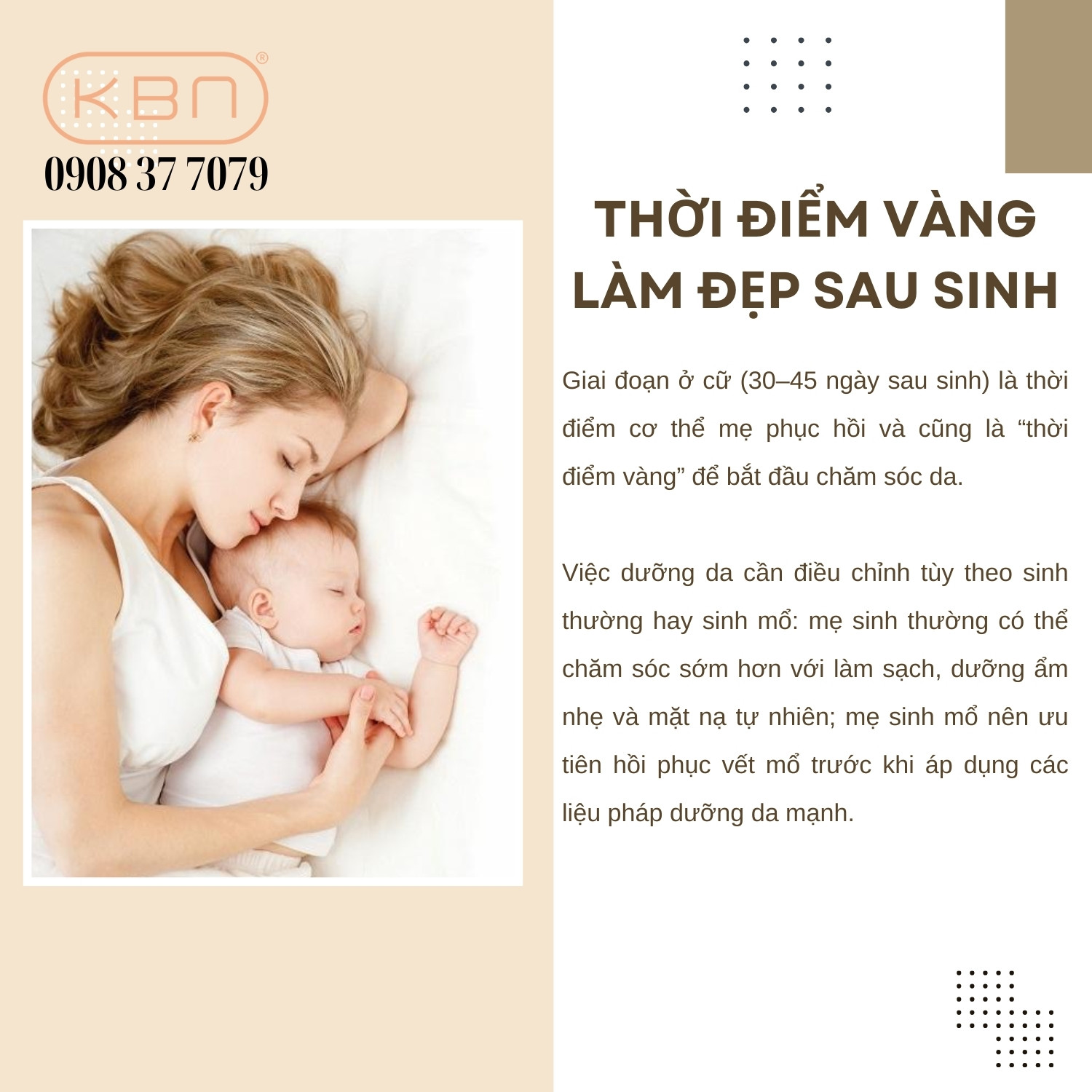 Hana KBN tự hào mang đến các dòng thiết bị thẩm mỹ tiên tiến và mỹ phẩm Hàn Quốc chính hãng, giúp mẹ bỉm dễ dàng chăm sóc da tại nhà hoặc kết hợp với liệu trình spa chuyên nghiệp. Với những sản phẩm lành tính, an toàn và hiệu quả, chị em hoàn toàn có thể yên tâm dưỡng da, vừa phục hồi sức khỏe vừa lấy lại vẻ đẹp tự nhiên sau sinh. Hãy gọi ngay 0908 37 7079 để được tư vấn chi tiết và lựa chọn giải pháp phù hợp.