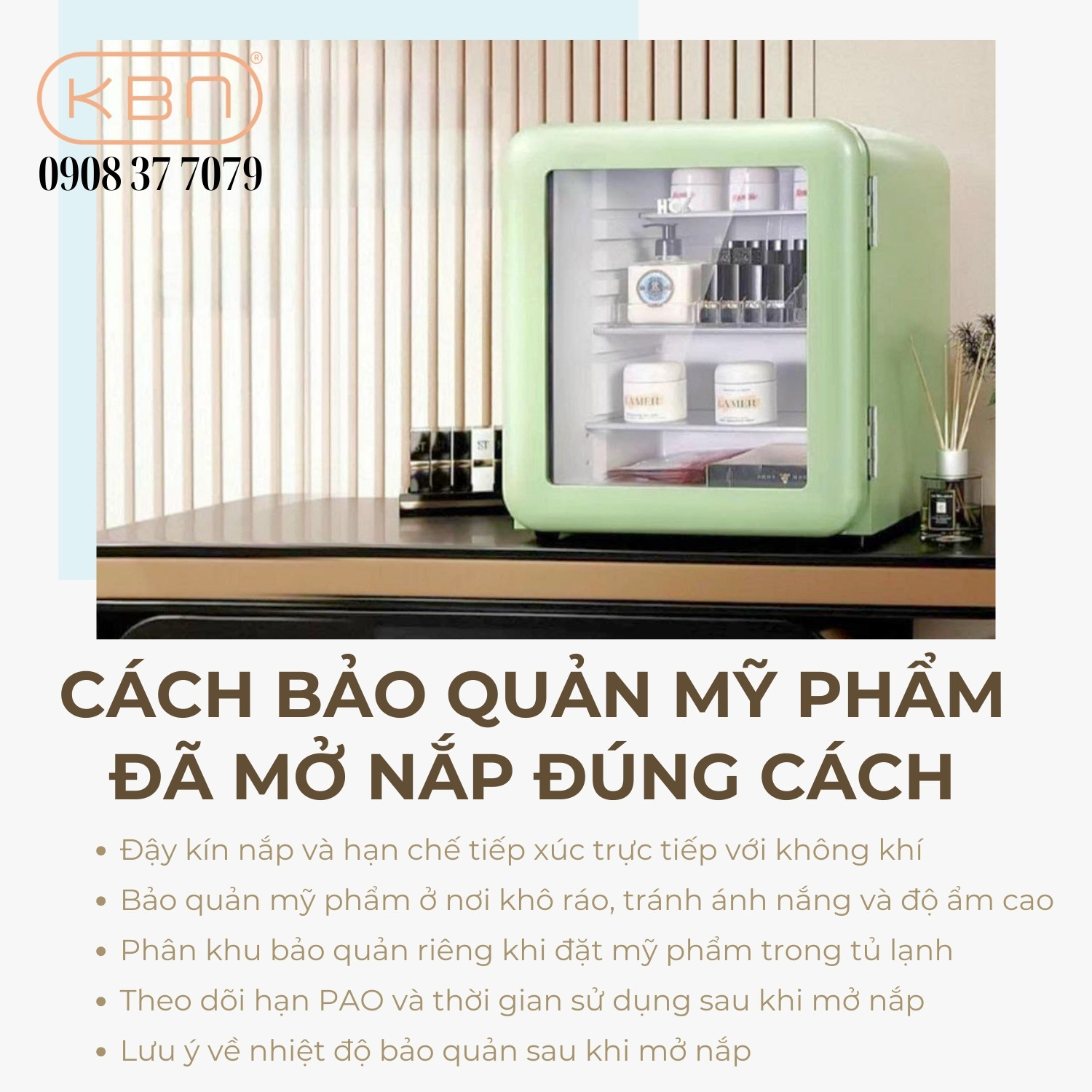 - Lưu ý về nhiệt độ bảo quản sau khi mở nắp: Sau khi mở, mỹ phẩm không nên được bảo quản ở nhiệt độ quá thấp hoặc thay đổi nhiệt độ liên tục. Trước khi cho vào tủ lạnh, cần đọc kỹ hướng dẫn từ nhà sản xuất và điều chỉnh nhiệt độ phù hợp với từng loại sản phẩm để tránh làm biến đổi công thức ban đầu.