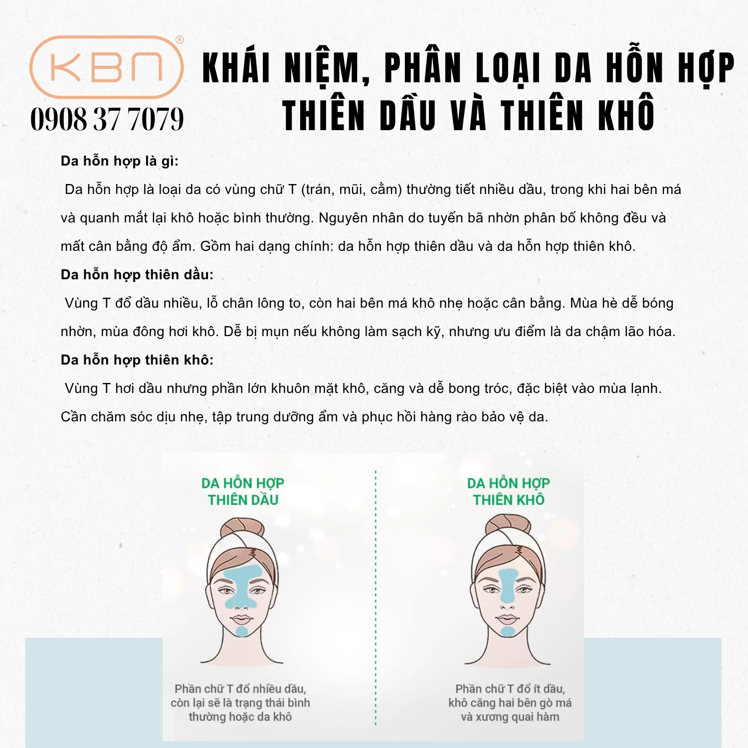 Khái niệm, phân loại da hỗn hợp thiên dầu và thiên khô.