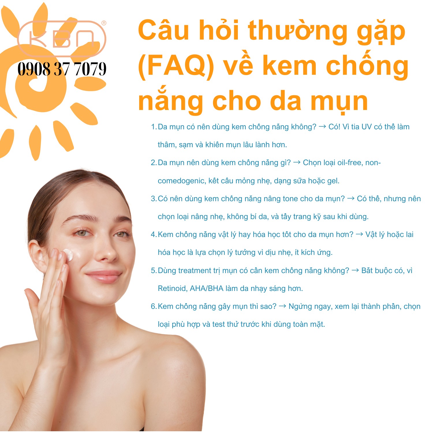 Câu hỏi thường gặp (FAQ) về kem chống nắng cho da mụn.