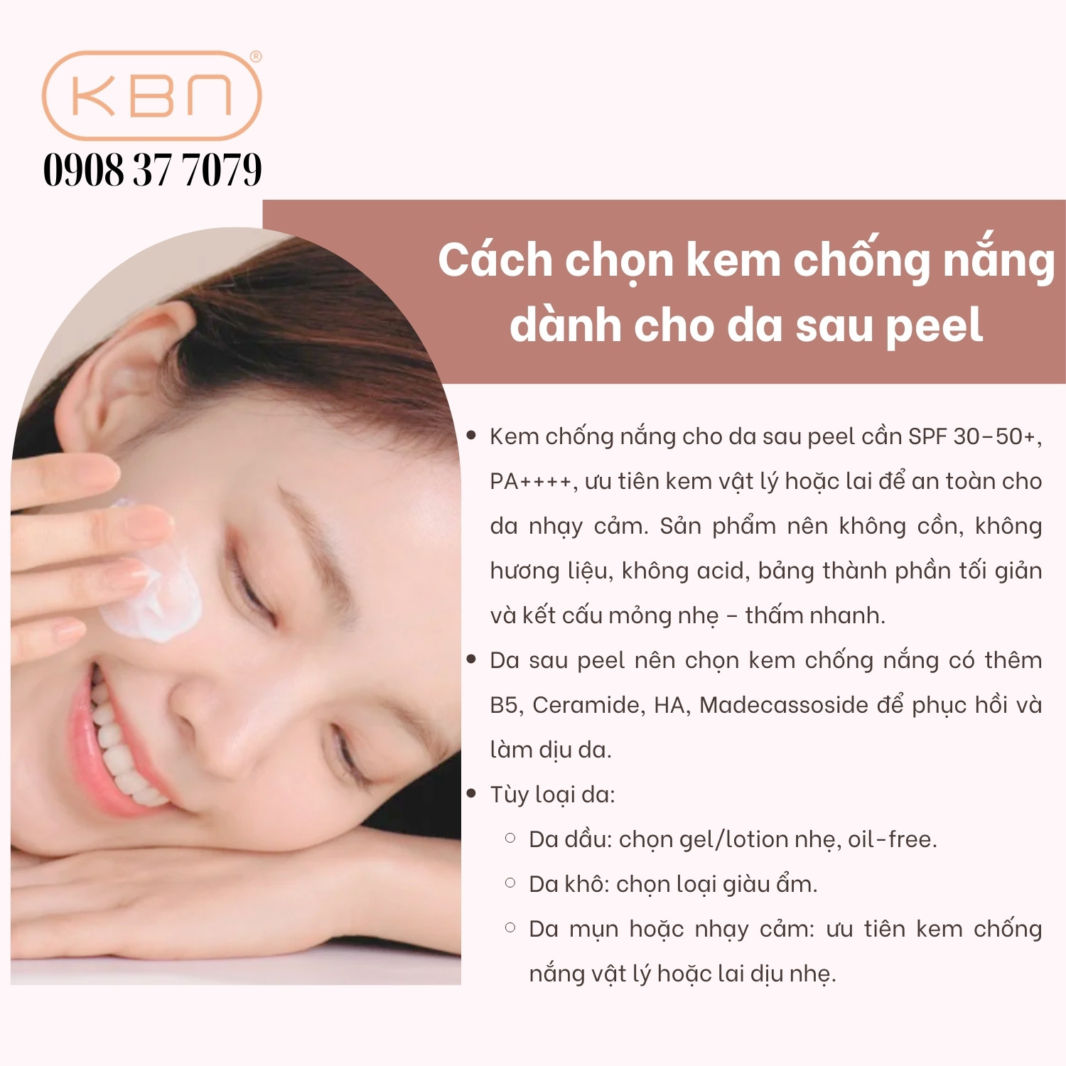 Nếu bạn đang tìm kiếm những dòng kem chống nắng an toàn, dịu nhẹ, phù hợp cho da sau peel và da đang treatment, Hana KBN – nhà phân phối đa dạng các dòng mỹ phẩm dưỡng da Hàn Quốc chính hãng chính là địa chỉ đáng tin cậy dành cho bạn. Liên hệ ngay 0908 37 7079 để được tư vấn chi tiết và lựa chọn sản phẩm phù hợp nhất cho làn da của mình.