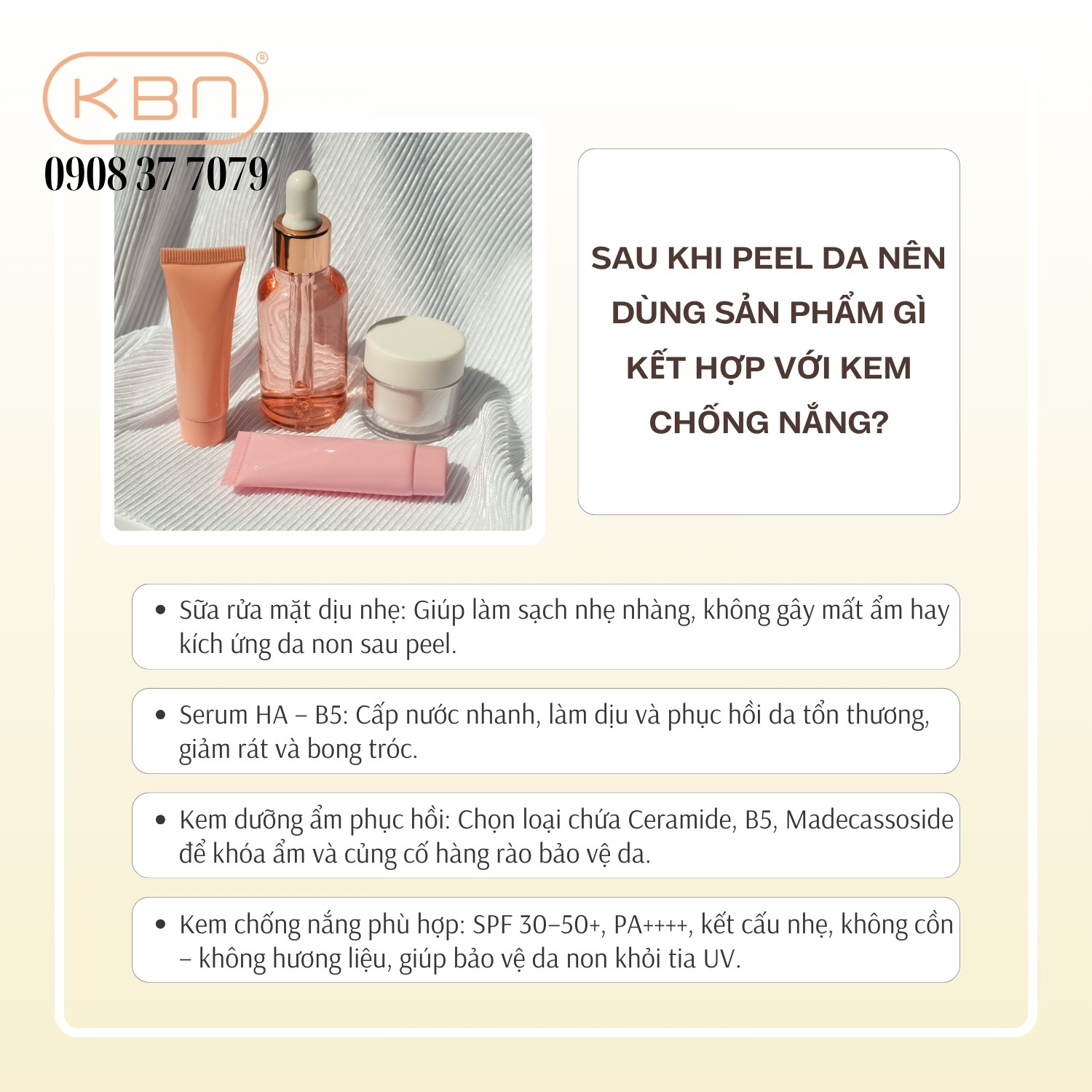 6. Sau khi peel da nên dùng sản phẩm gì kết hợp vớI kem chống nắng?