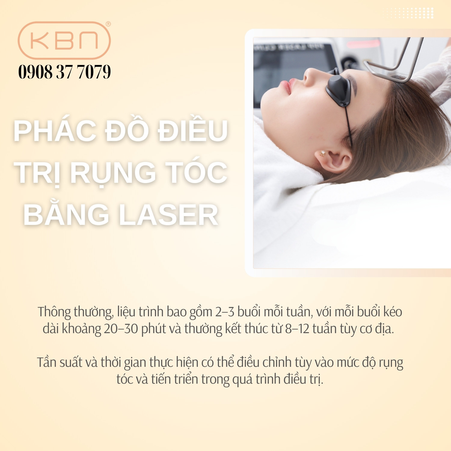 - Tần suất và thời gian thực hiện: Thông thường, liệu trình bao gồm 2–3 buổi mỗi tuần, với mỗi buổi kéo dài khoảng 20–30 phút và thường kết thúc từ 8–12 tuần tùy cơ địa. Tần suất và thời gian thực hiện có thể điều chỉnh tùy vào mức độ rụng tóc và tiến triển trong quá trình điều trị.