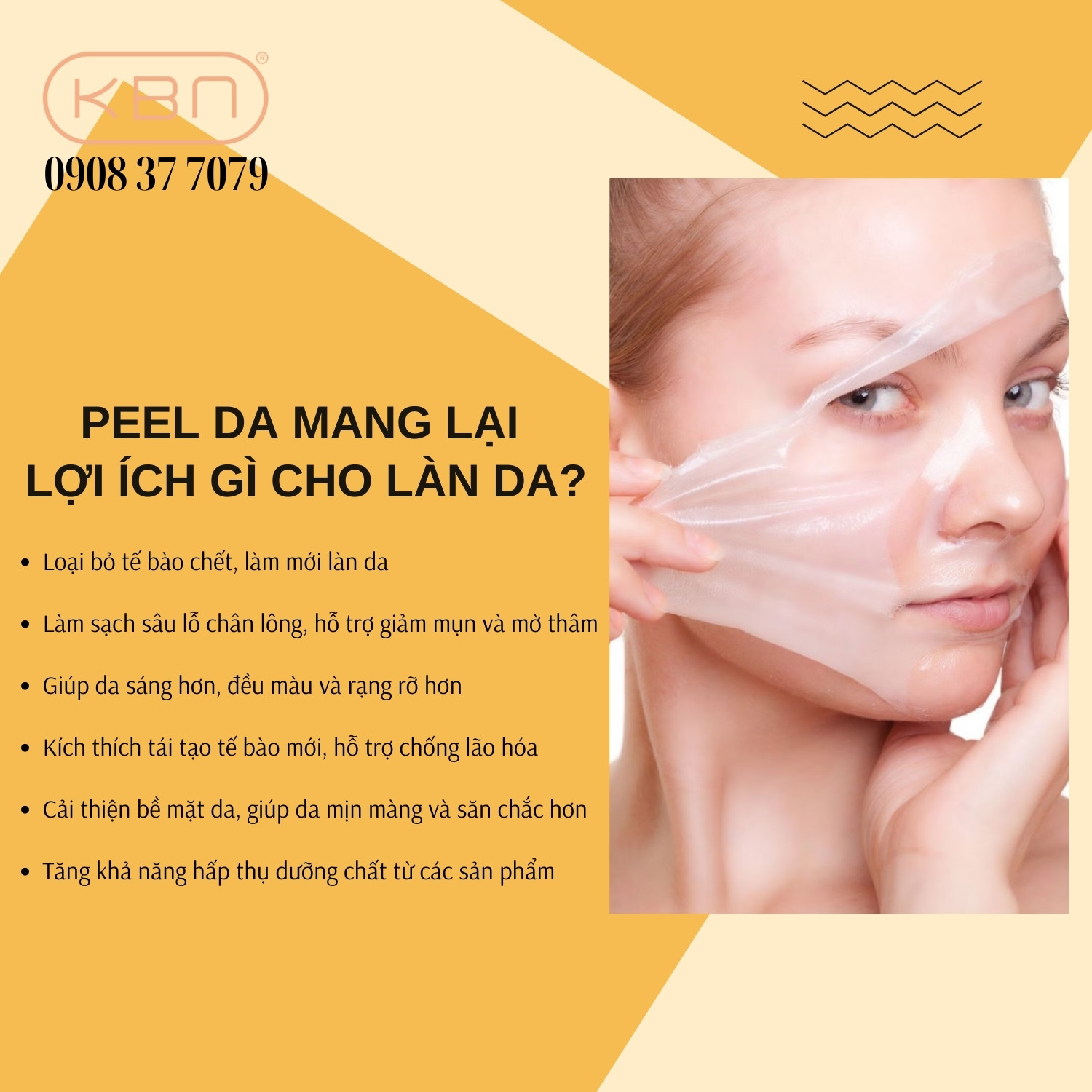- Hỗ trợ chống lão hóa: Peel da kích thích sản sinh collagen, giúp da săn chắc và cải thiện các dấu hiệu lão hóa sớm như nếp nhăn nhỏ, da kém đàn hồi.