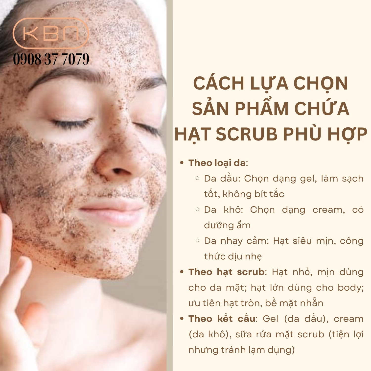 Cách lựa chọn sản phẩm chứa hạt scrub phù hợp.