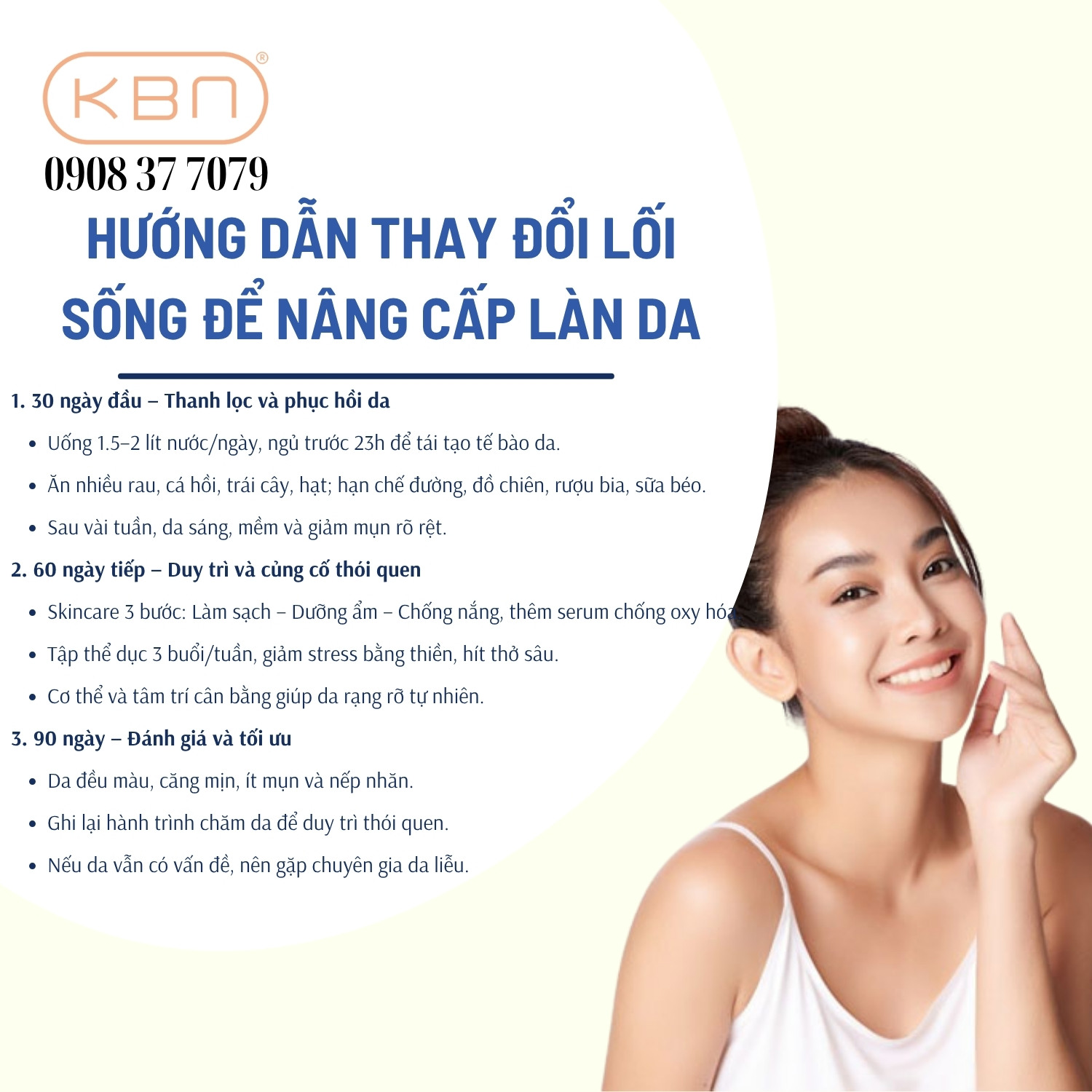 Hãy coi việc chăm sóc da như một hành trình nuôi dưỡng cơ thể từ bên trong lẫn bên ngoài. Mỗi lựa chọn – từ bữa ăn, giấc ngủ đến thói quen tập luyện – đều là “liều thuốc” giúp tái sinh và bảo vệ làn da khỏi tác động của thời gian và môi trường. Và để hành trình đó đạt hiệu quả cao nhất, việc kết hợp cùng các thiết bị thẩm mỹ công nghệ cao và mỹ phẩm dưỡng da chính hãng Hàn Quốc từ Hana KBN sẽ giúp bạn tối ưu kết quả chăm sóc, phục hồi và trẻ hóa da toàn diện.