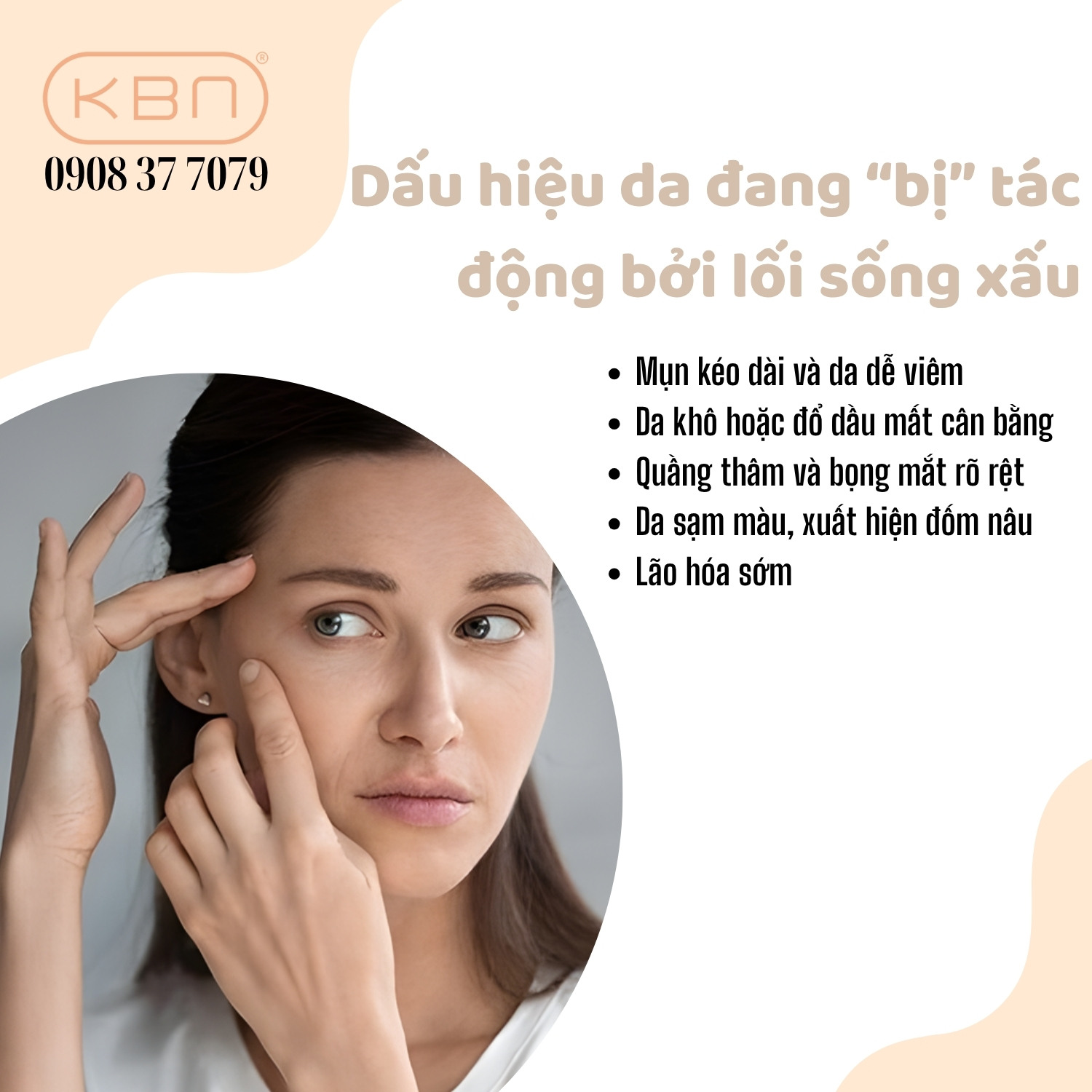 Dấu hiệu da đang “bị” tác động bởi lối sống xấu.