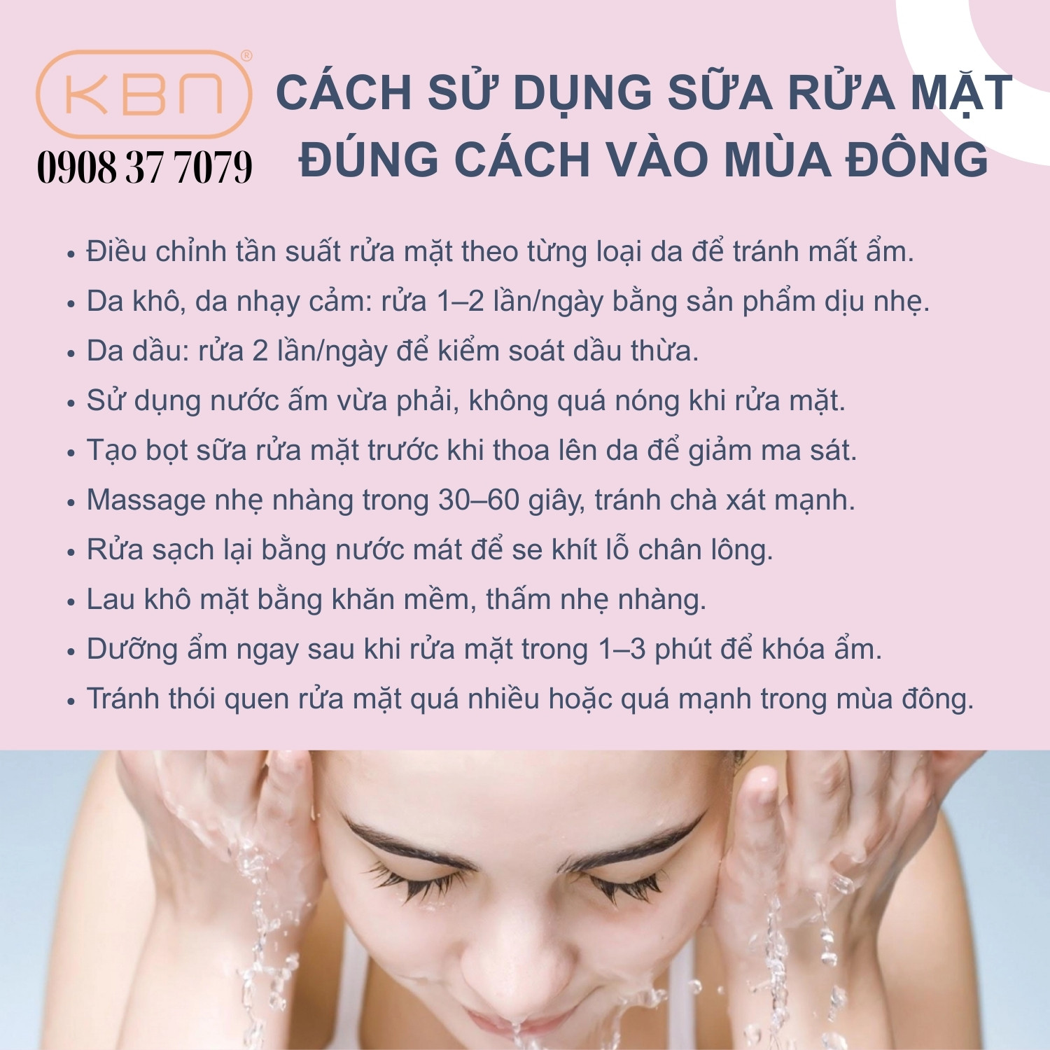Bên cạnh việc lựa chọn sản phẩm phù hợp, cách sử dụng sữa rửa mặt cũng ảnh hưởng trực tiếp đến sức khỏe làn da trong mùa lạnh. Nếu rửa mặt không đúng cách, da rất dễ bị mất nước, khô căng và suy yếu hàng rào bảo vệ tự nhiên. Vì vậy, áp dụng đúng phương pháp rửa mặt mùa đông sẽ giúp duy trì làn da sạch khỏe, mềm mại và hạn chế tối đa các vấn đề thường gặp.