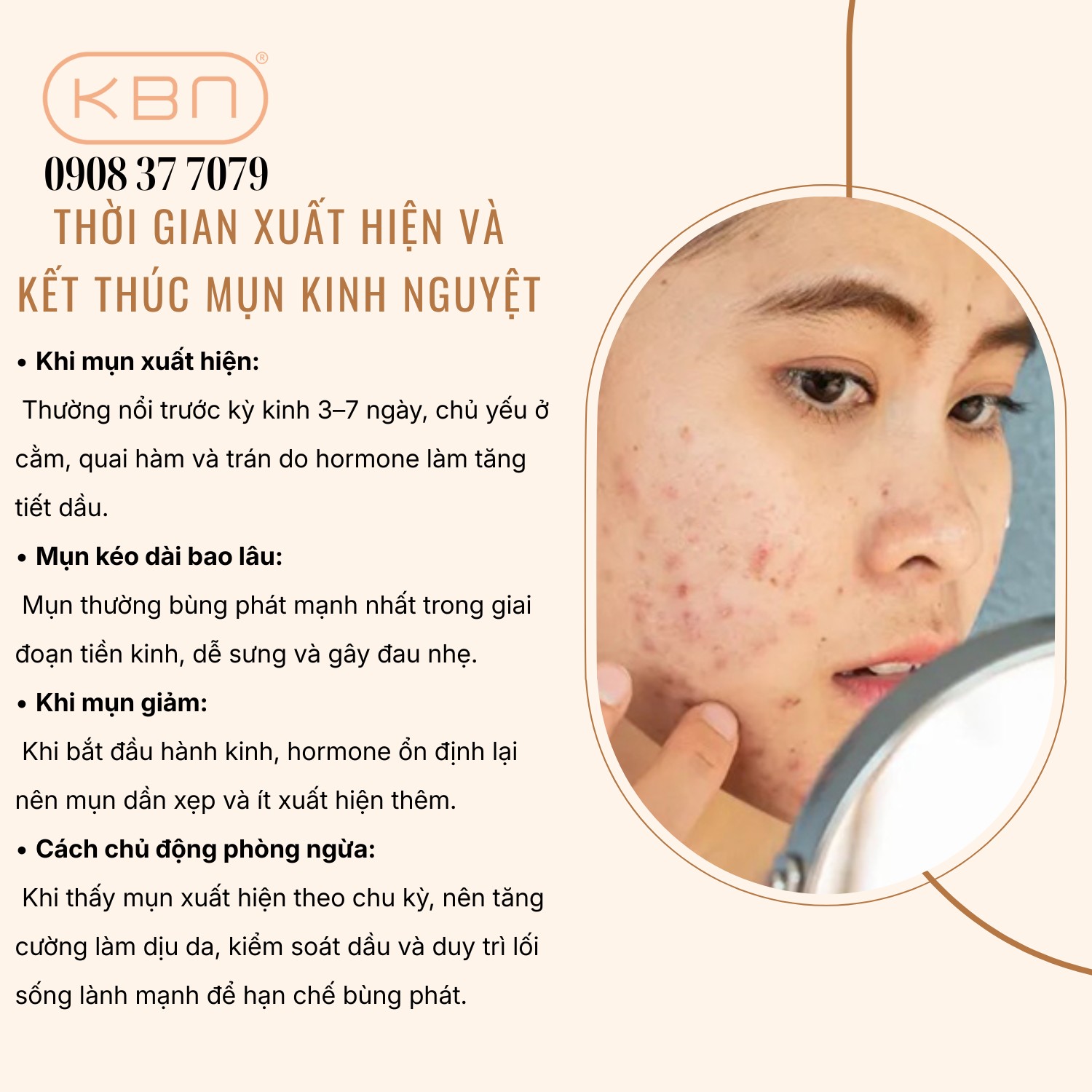 Thời gian xuất hiện và kết thúc mụn kinh nguyệt.