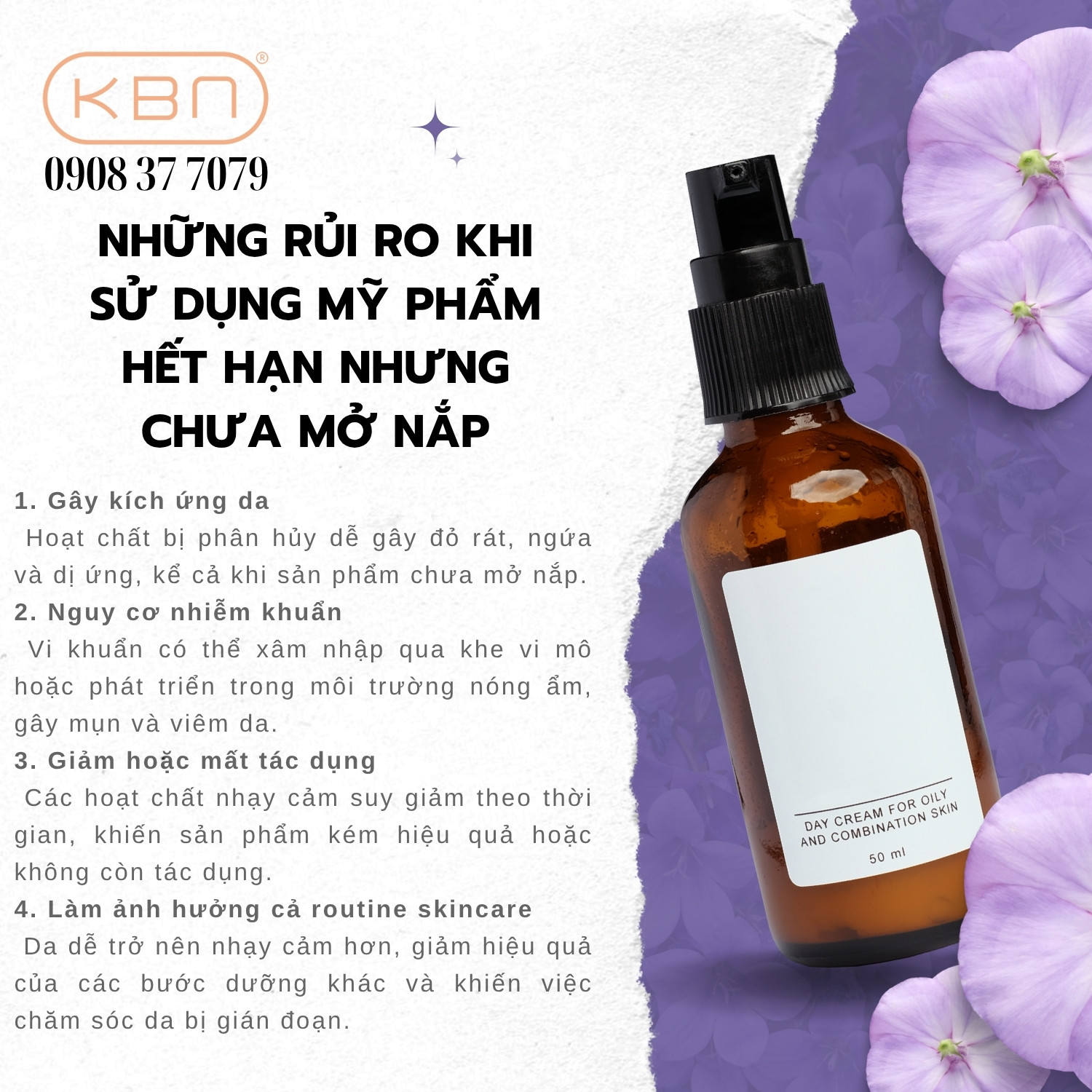 Các hoạt chất trong sản phẩm vẫn có thể suy giảm theo thời gian, ảnh hưởng đến hiệu quả và đôi khi gây kích ứng da nếu sử dụng. Đây cũng là lý do mà nhiều người thắc mắc: “Mỹ phẩm chưa mở nắp dùng được bao lâu?” và “Dùng mỹ phẩm quá hạn mở nắp có sao không?”.