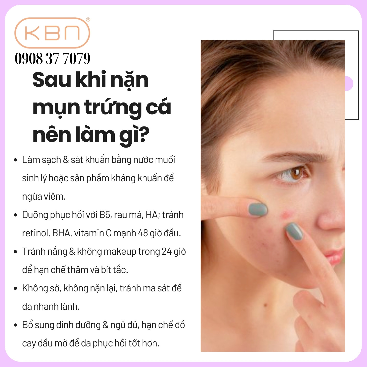 Nếu bạn đang tìm kiếm giải pháp phục hồi da sau nặn mụn hay các dòng mỹ phẩm dưỡng da chuẩn Hàn chất lượng cao, Hana KBN – nhà phân phối mỹ phẩm Hàn Quốc chính hãng luôn sẵn sàng đồng hành cùng bạn trên hành trình tái tạo làn da. Liên hệ 0908 37 7079 để được tư vấn và lựa chọn sản phẩm phù hợp nhất cho tình trạng da hiện tại của bạn.