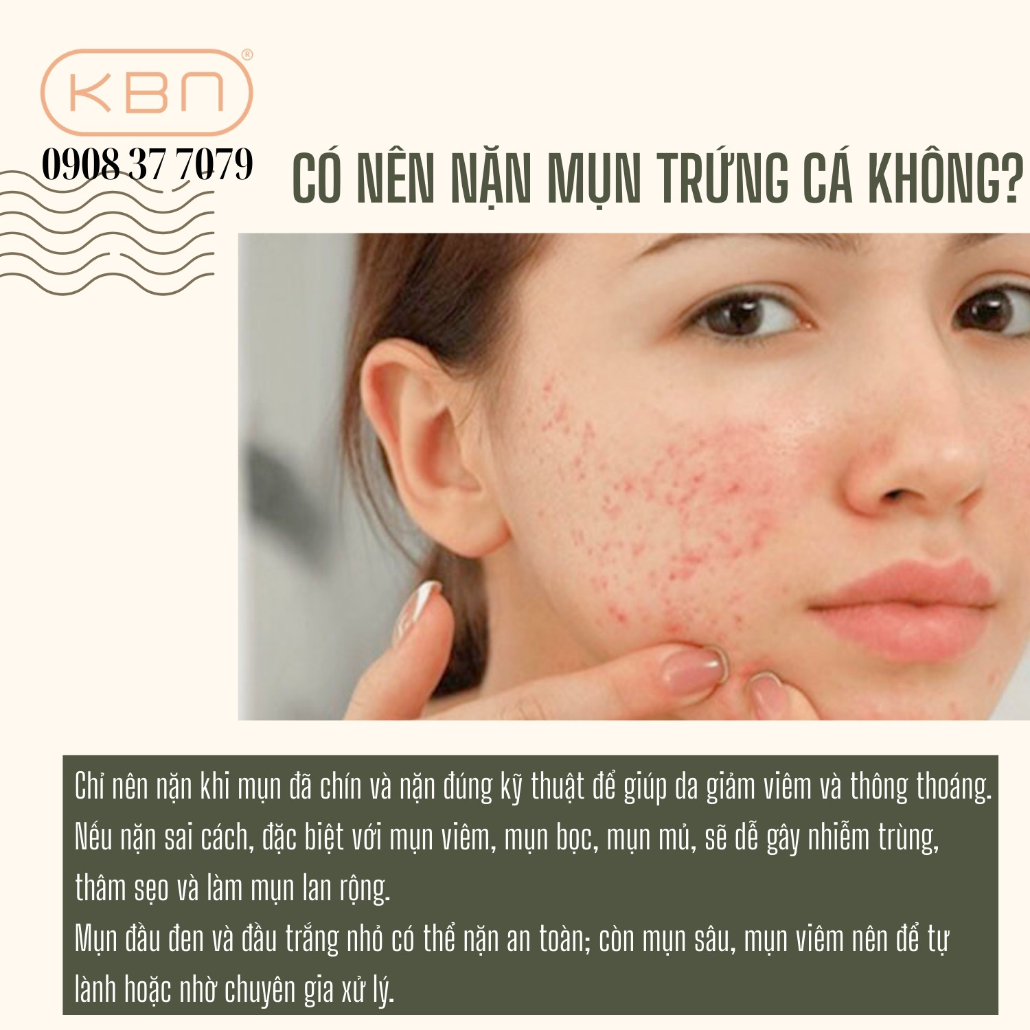 Khi nhìn thấy những nốt mụn trứng cá sưng đỏ hay mụn đầu đen, không ít người muốn xử lý ngay lập tức bằng cách nặn. Việc nặn mụn sai cách không chỉ làm tình trạng tồi tệ hơn mà còn có thể để lại sẹo, thâm lâu dài. Chính vì vậy việc nặn mụn trứng cá đúng cách là rất quan trọng để vừa loại bỏ nhân mụn hiệu quả, vừa bảo vệ làn da khỏi những tổn thương không đáng có. Mời bạn cùng mỹ phẩm spa Hana KBN khám phá thông tin chi tiết trong bài viết này.