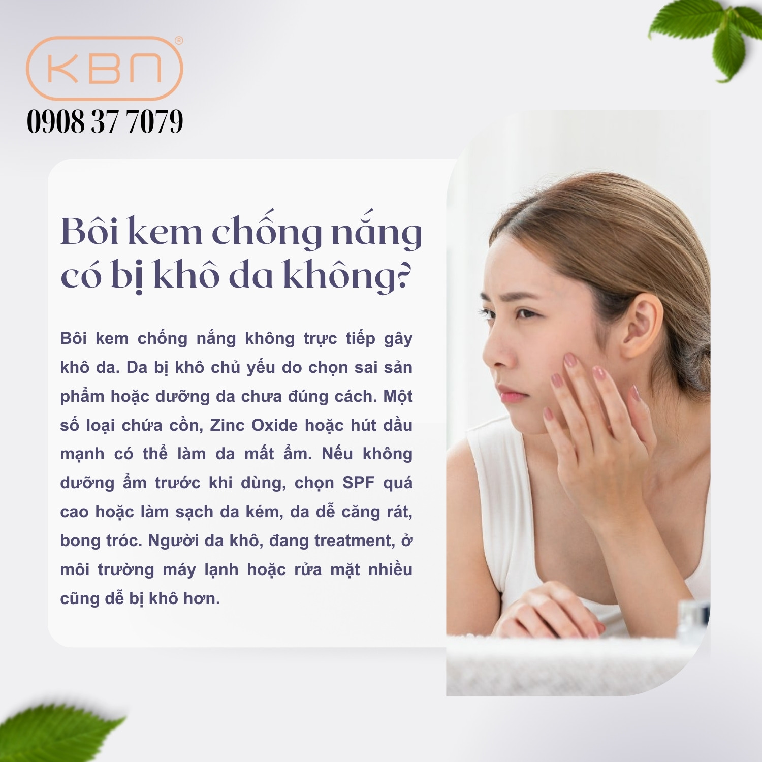 Kem chống nắng có làm khô da không? Về mặt khoa học, kem chống nắng không trực tiếp làm khô da. Tình trạng khô da xảy ra khi da bị thiếu nước và dầu tự nhiên, khiến hàng rào bảo vệ suy yếu.