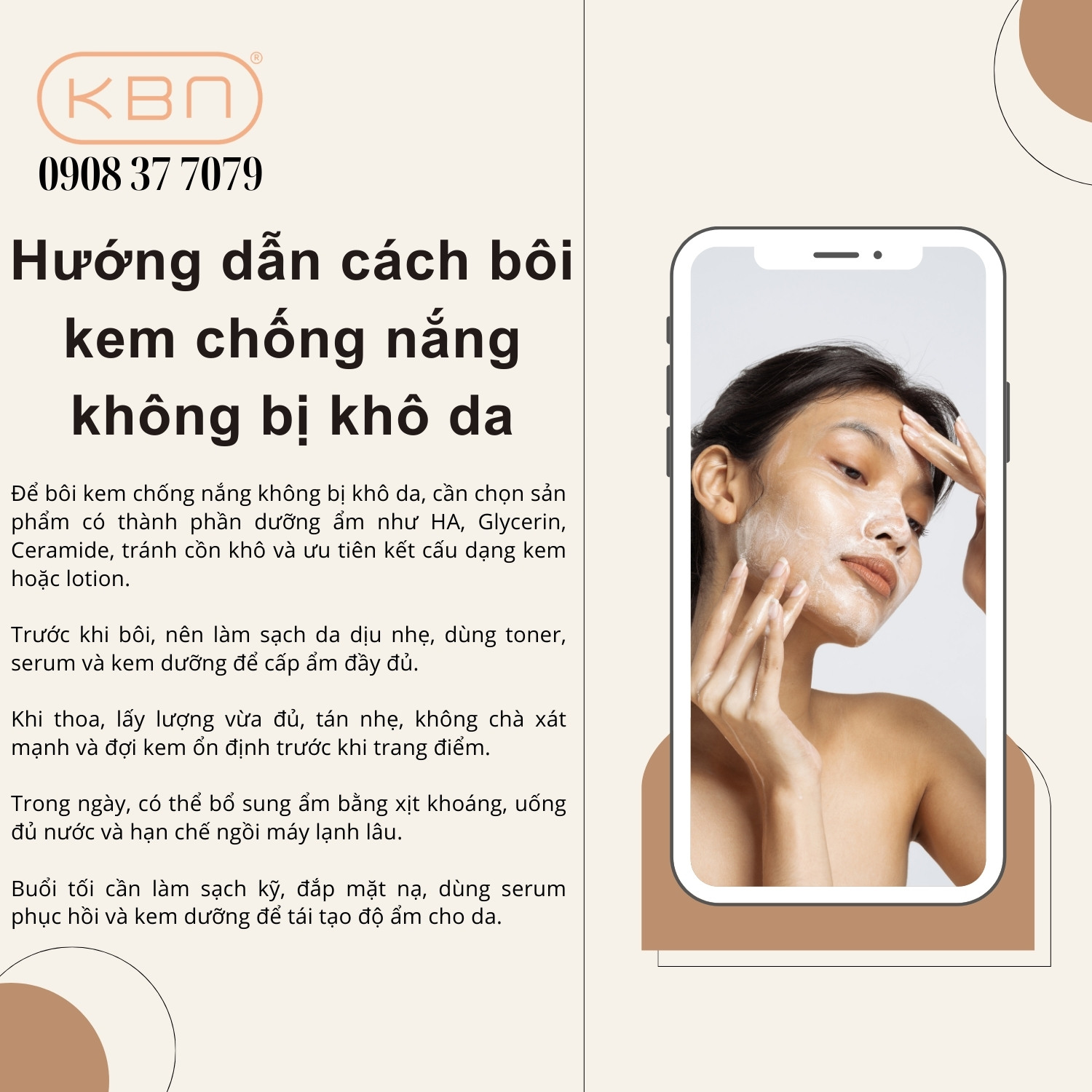 - Áp dụng đúng cách bôi kem chống nắng không bị khô da để duy trì độ ẩm.