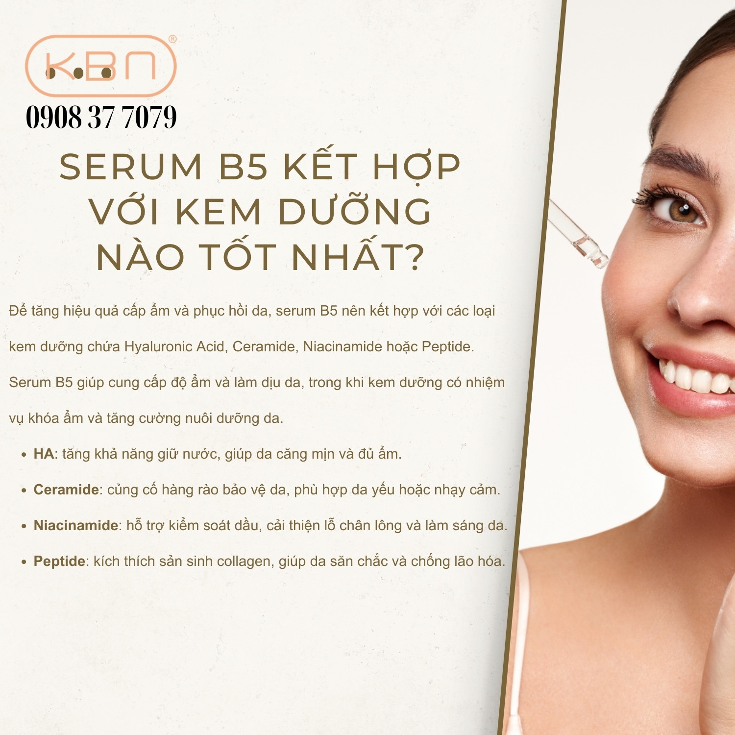 Khi lựa chọn kem dưỡng để dùng chung với serum B5, điều quan trọng là cần cân nhắc tình trạng da và nhu cầu chăm sóc da cụ thể. Sự kết hợp đúng thành phần sẽ giúp tăng hiệu quả phục hồi, cấp ẩm và nuôi dưỡng làn da khỏe mạnh lâu dài.