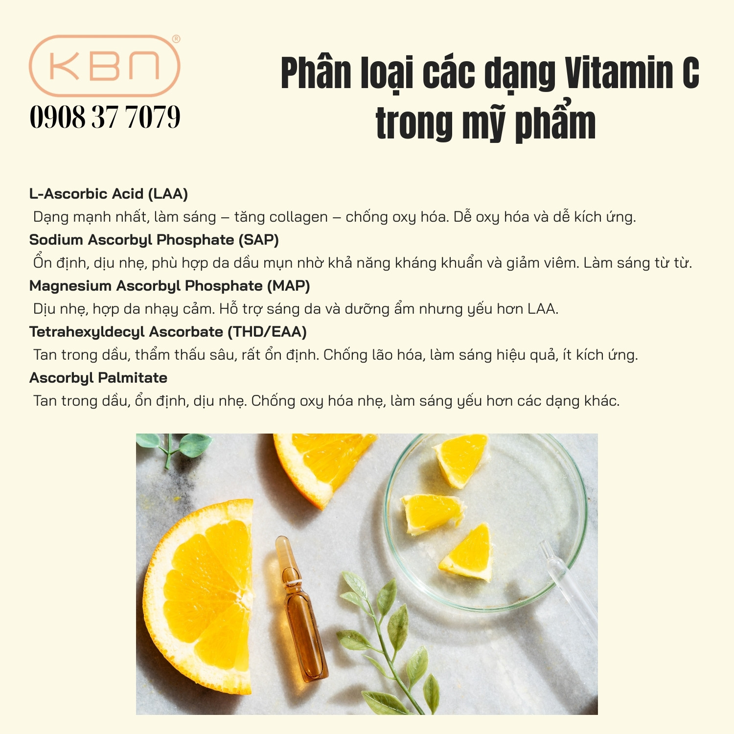Phân loại các dạng Vitamin C trong mỹ phẩm.