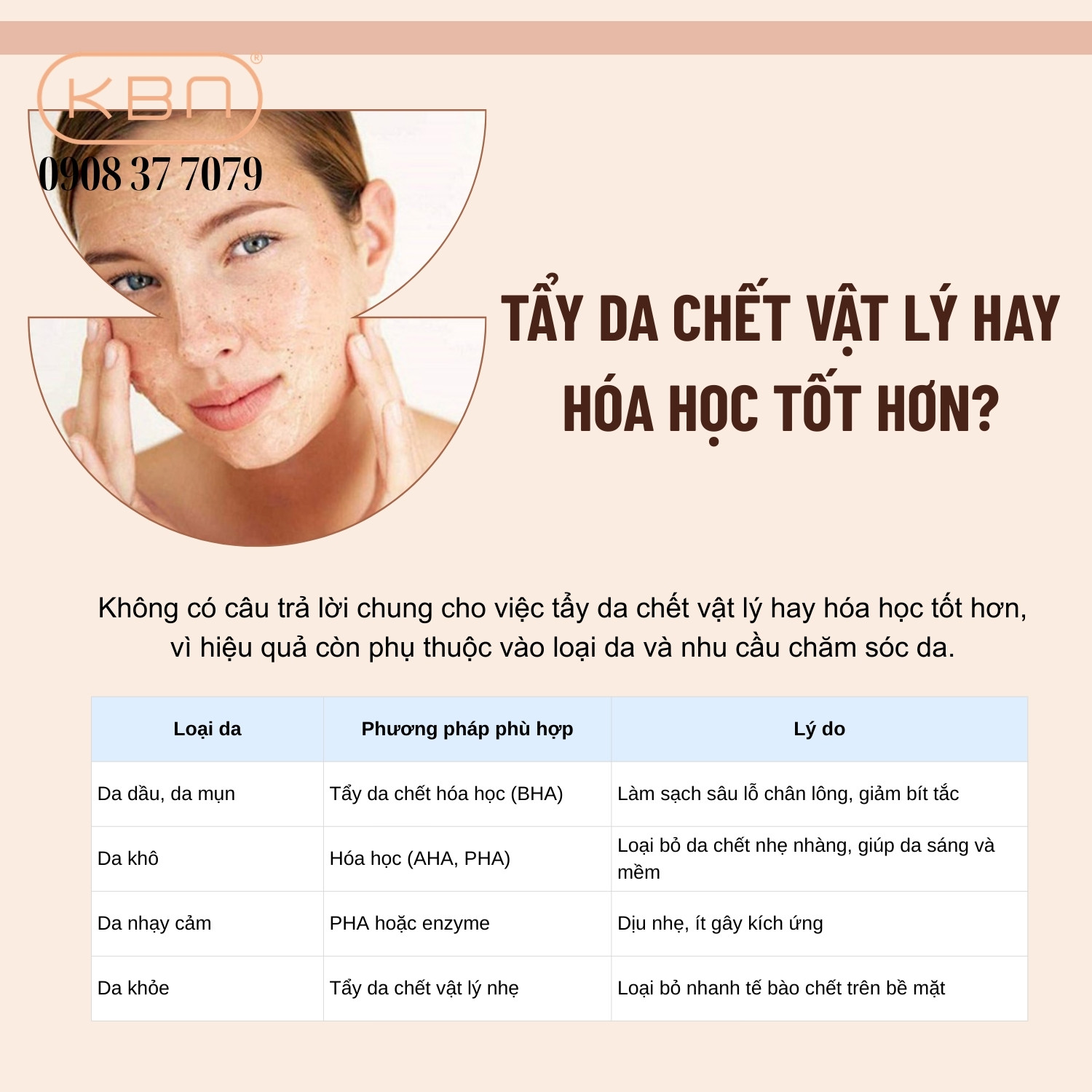 Phương pháp tẩy da chết phù hợp |