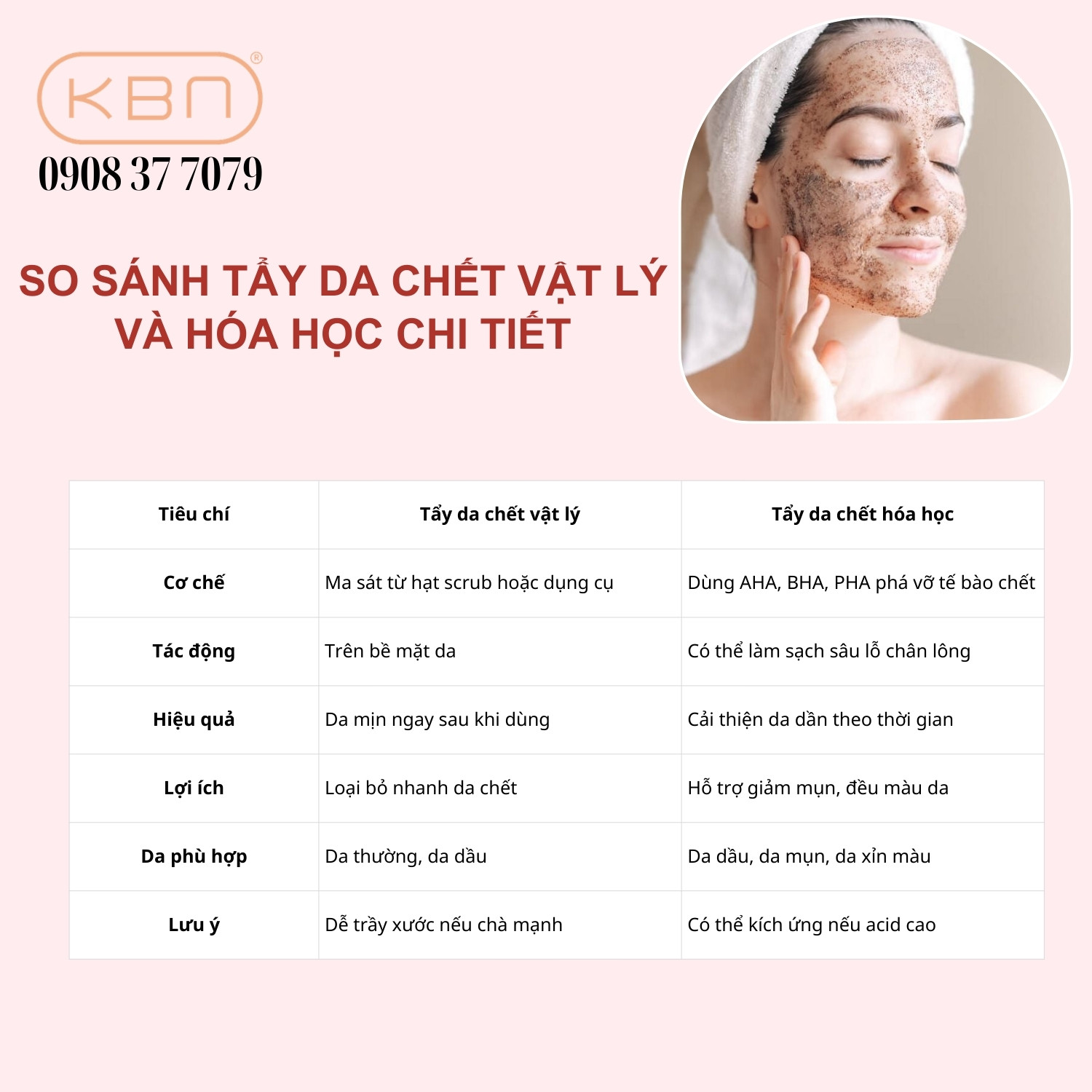 So sánh tẩy da chết vật lý và hóa học chi tiết.
