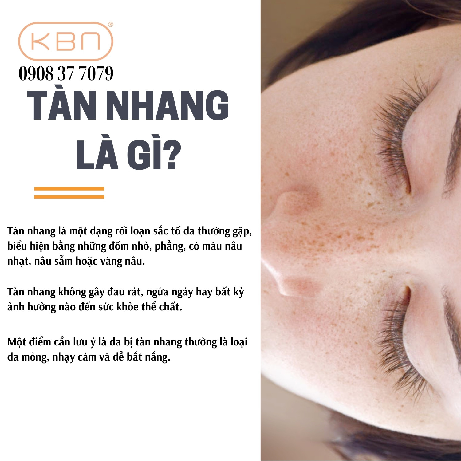Tàn nhang là một dạng rối loạn sắc tố da thường gặp, biểu hiện bằng những đốm nhỏ, phẳng, có màu nâu nhạt, nâu sẫm hoặc vàng nâu. Kích thước của tàn nhang thường chỉ dao động từ 1 – 5 mm, đôi khi có thể liên kết lại với nhau thành mảng lớn hơn. Về bản chất, đây là sự gia tăng bất thường của melanin – sắc tố quy định màu da, tóc và mắt – dưới tác động của các yếu tố bên trong cơ thể hoặc môi trường bên ngoài.