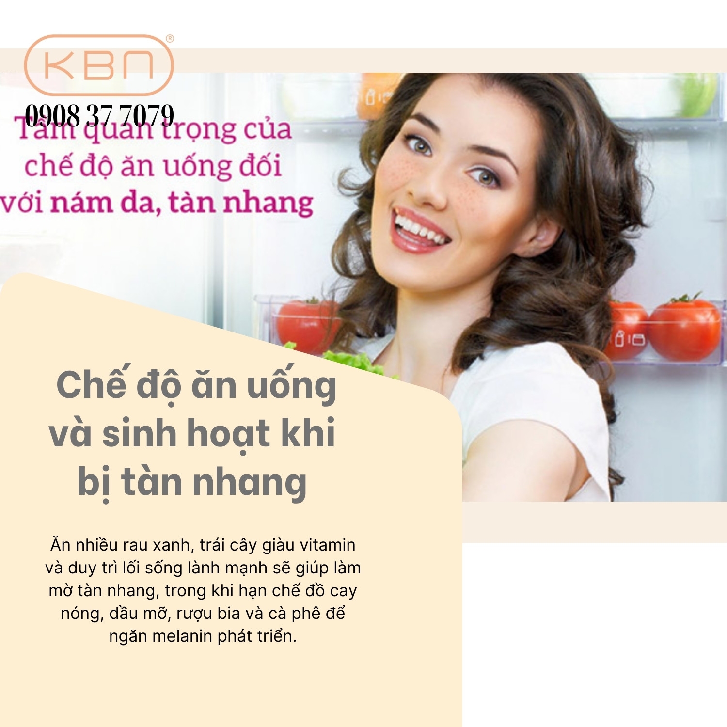 Tóm lại, kết hợp chế độ ăn giàu dinh dưỡng, hạn chế thực phẩm kích thích melanin và duy trì lối sống lành mạnh sẽ giúp bạn kiểm soát tình trạng tàn nhang hiệu quả, làm mờ các đốm nâu và ngăn ngừa sự lan rộng trên da.