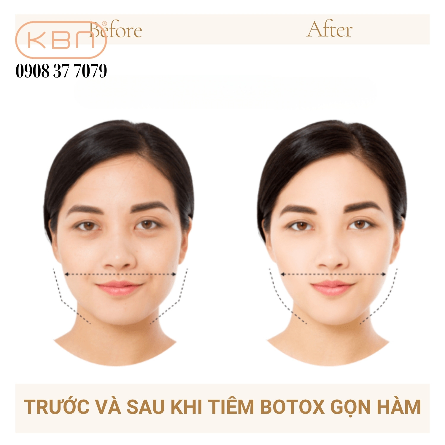Trước và sau khi tiêm botox gọn hàm.