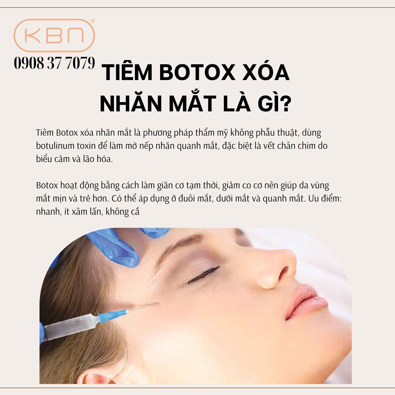 Kỹ thuật và vị trí tiêm Botox vùng mắt.