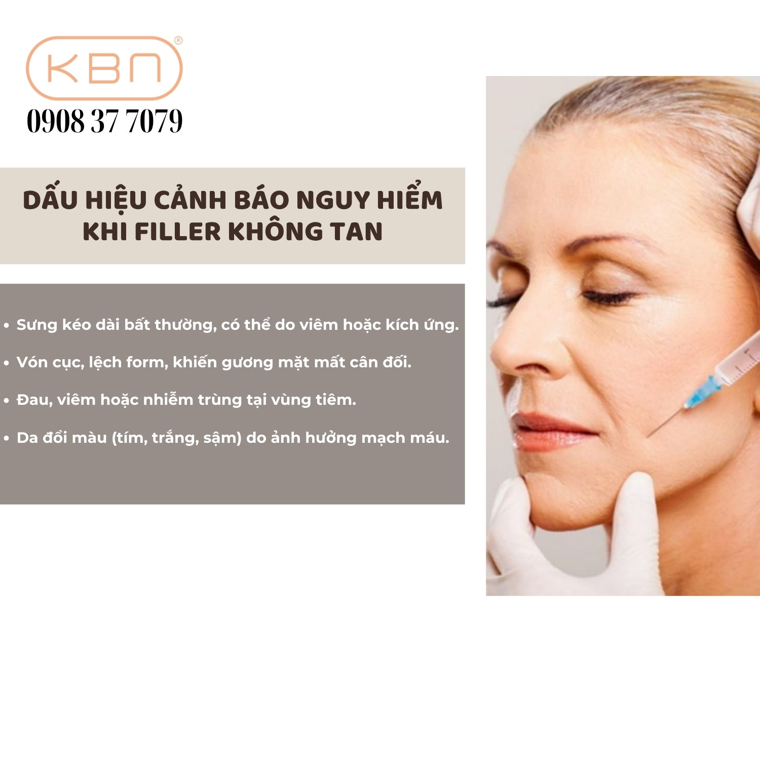 - Khuyến nghị từ chuyên gia: Theo các bác sĩ da liễu, khi xuất hiện bất kỳ dấu hiệu bất thường nào kể trên, người đã tiêm filler không nên chủ quan mà cần thăm khám càng sớm càng tốt. Việc can thiệp kịp thời không chỉ giúp xử lý triệt để tình trạng filler không tan mà còn hạn chế tối đa các biến chứng ảnh hưởng đến sức khỏe và thẩm mỹ lâu dài.