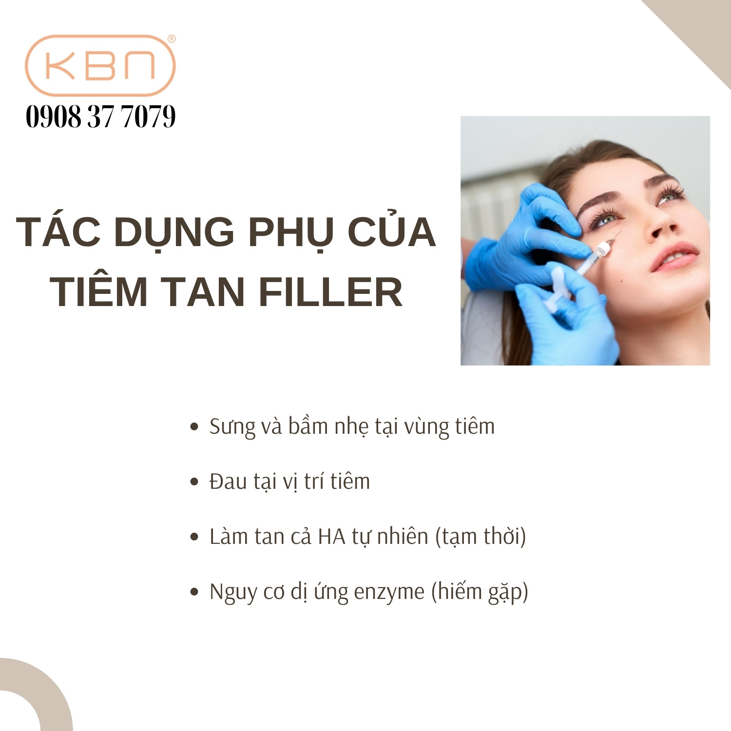 Trong một số trường hợp hiếm, có thể xảy ra phản ứng dị ứng với thành phần enzyme. Vì vậy, việc kiểm tra phản ứng trước khi tiêm và theo dõi sau thực hiện là rất cần thiết. Nhìn chung, nếu được thực hiện đúng kỹ thuật và trong môi trường đạt chuẩn, tiêm tan filler vẫn là giải pháp an toàn và hiệu quả trong việc xử lý các vấn đề liên quan đến filler.